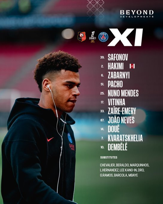 虎扑02月13日讯 法甲第22轮,巴黎圣日耳曼客场对阵雷恩,赛前官方公布本场首发。