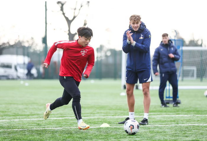在托特纳姆热刺训练中心,江苏足球青训俱乐部足球小将现场观摩了热刺一线球员的训练,并在热刺U23青训教练带领下,进行了互动指导。热刺青训教练注重以球员为中心的发展理念——强调决策能力、空间感知与情绪管理并重,而非单纯体能与技巧堆砌。观摩过程中,代表团成员认真记录训练方法与组织逻辑,针对青少年球员技术提升、心理建设等问题与热刺教练团队展开即时交流,收获了理论与实操的指导建议。
