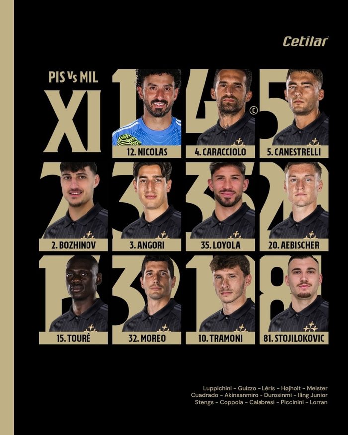 虎扑02月13日讯 意甲第25轮,比萨主场对阵AC米兰,赛前官方公布本场首发。