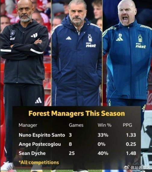 只要看看本赛季诺丁汉森林这三位前任主帅的战绩,努诺执教3场,胜率33%,场均积1.33分,离队原因与老板关系破裂;波斯特科格鲁执教8场,战绩更是无法直视的2平6负胜率0%,场均积0.25分;肖恩戴奇执教25场,胜率40%,场均积1.48分,戴奇其实是这三人中成绩最好的那个。 他40%的胜率甚至超过了曾经带队进欧战的努诺(38.36%)。如果只计算戴奇上任后的积分,森林甚至能排在积分榜中游。但他还是下课了。
