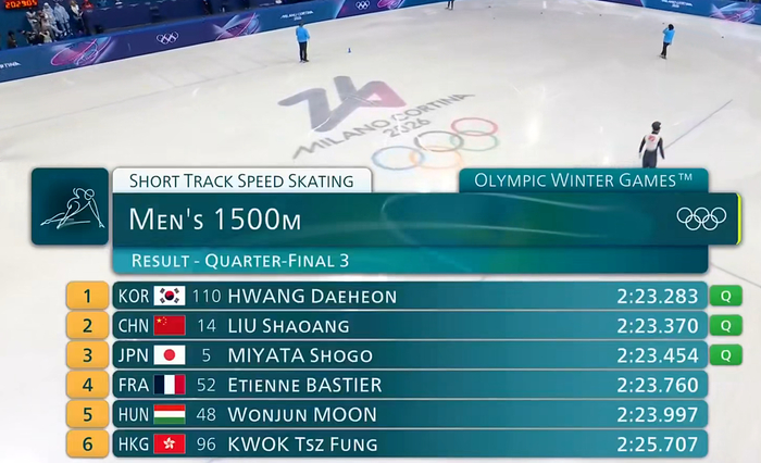 米兰冬奥会短道速滑男子1500米1/4决赛,中国派出孙龙、林孝埈、刘少昂三位选手参赛,孙龙和林孝埈在第四组,刘少昂在第三组。