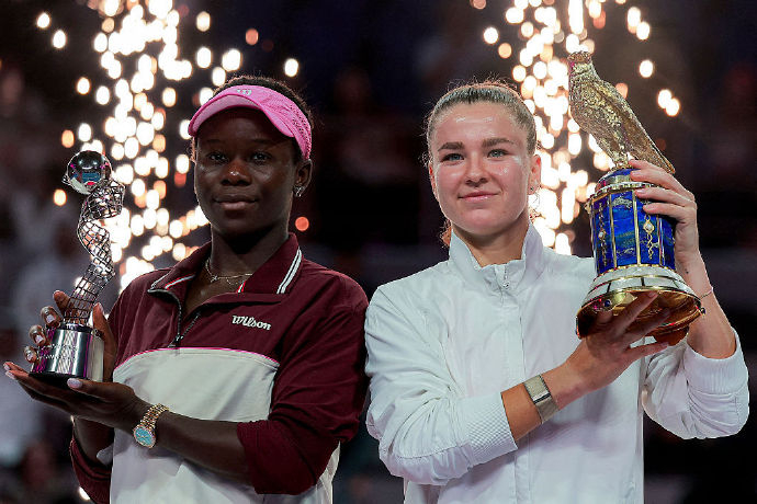 跟去年一样,今年的多哈站也是冷门不断,1/8决赛阶段,一半前八种子提前出局,到了半决赛,前八种子全部被淘汰,包括头号种子斯瓦泰克、二号种子莱巴金娜,萨卡里、奥斯塔彭科、穆霍娃、姆博科携手晋级四强。最终,穆霍娃、姆博科会师决赛。