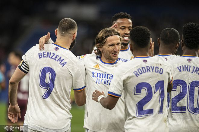 第43分钟,莫德里奇晃开大卫-席尔瓦打进世界波,皇马2-1反超!