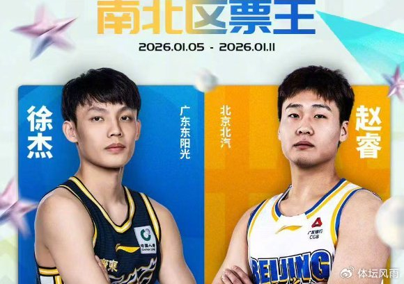 徐杰、赵睿当选2025-2026赛季,CBA南北区票王