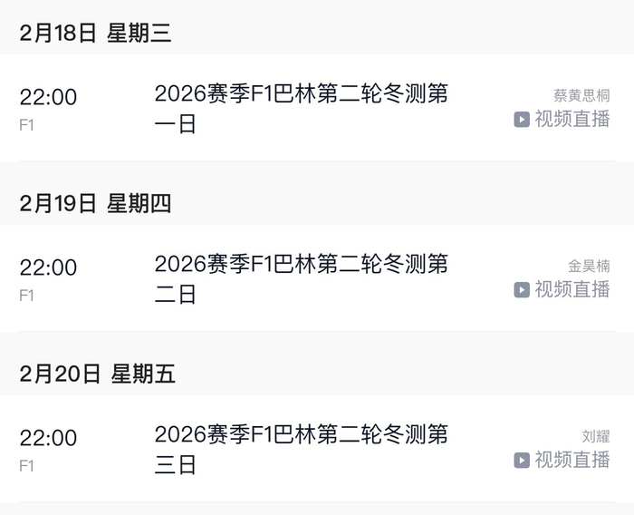 F1巴林季前测试第二轮 腾讯体育直播安排⬇️
