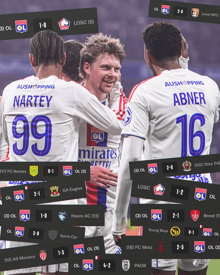 虎扑02月16日讯 法甲第22轮,里昂主场2-0击败尼斯,收获各项赛事13连胜。