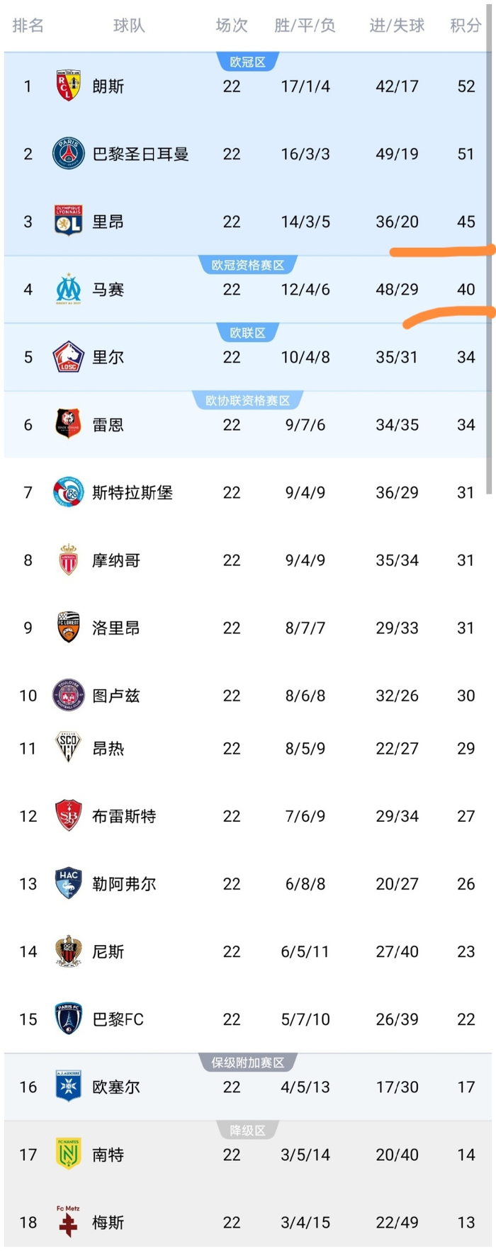 今天凌晨,法甲第22轮结束了4场较量,里昂、尼斯等队出战,这4场较量之后,法甲积分榜发生变化,我们来看看。