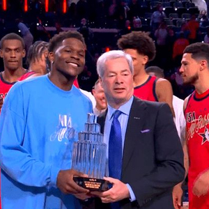 NBA全明星周末落幕,在压轴大戏全明星赛里,星辰队夺得冠军。在与条纹队的决赛里,星辰队多点开花,马克西、爱德华兹和霍姆格伦均得到至少8分,他们率队早早确立优势,星辰队最终以47-21战胜条纹队夺冠。爱德华兹3场比赛合计得到32分,获得MVP。