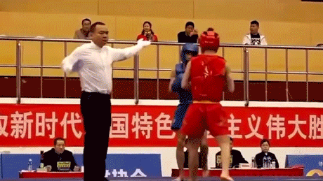 第二回合开局,朱记辉再次使出摔法杀手锏,但被对方化解。紧接着,他拳腿组合进攻后,再次以标志性摔法得分。最终,以2:0强势获胜,斩落金牌。