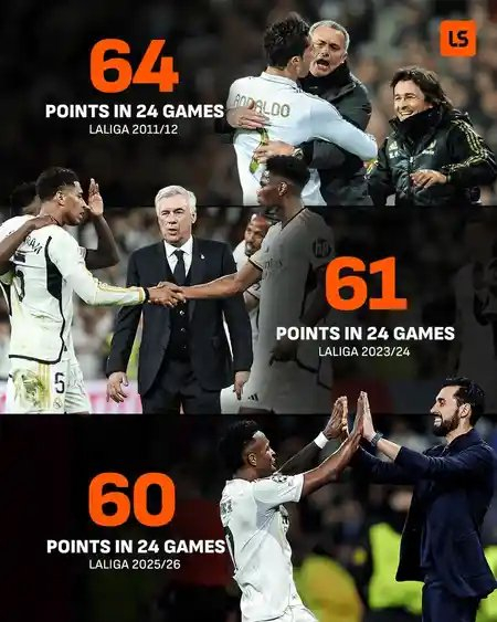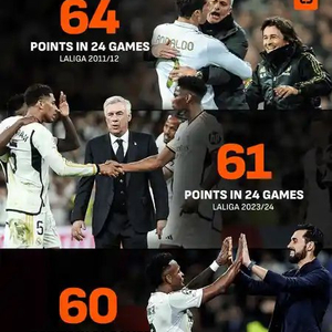皇马24轮积队史第三高分,此前同期高分均夺冠 虎扑足球 虎扑足球官方账号 02.1616:16 关注 根据LiveScore的统计,皇马本赛季在24轮西甲联赛过后,取得了队史同期第三高的积分。而在之前同期阶段取得这么多积分的赛季里,皇家马德里都收获了当赛季的冠军。