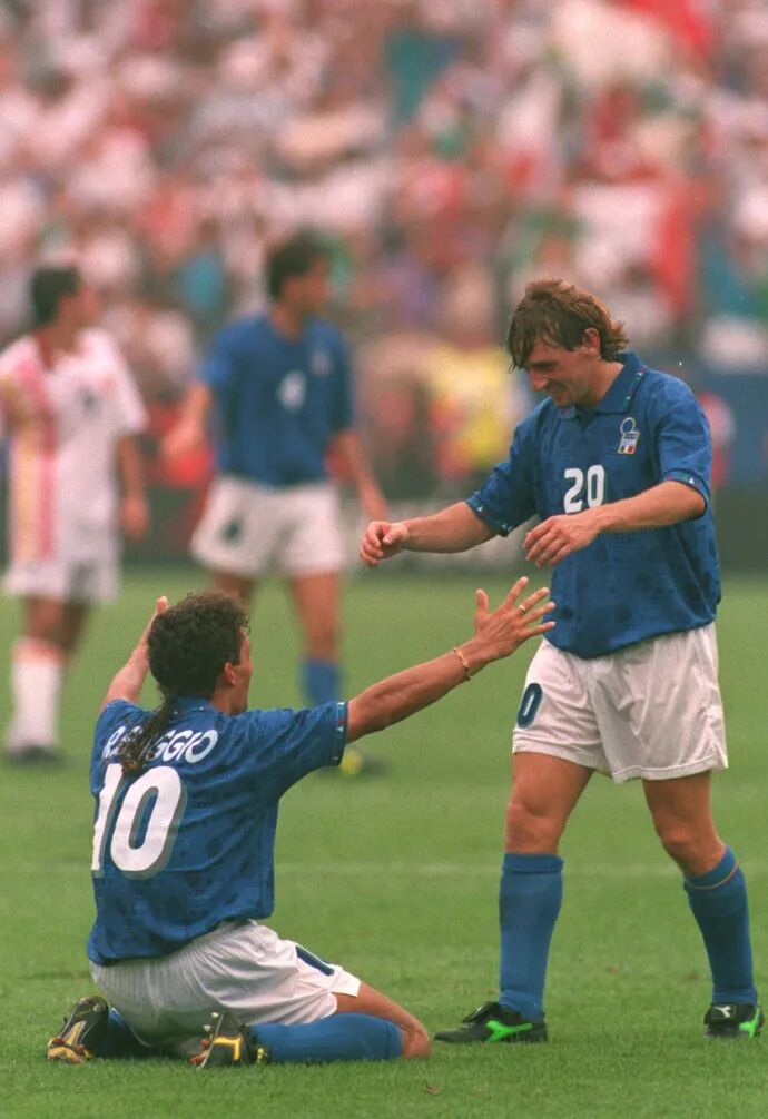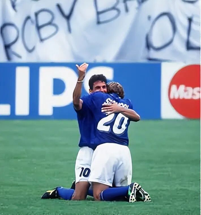 巴乔进球后西格诺里第一时间跑到跟前,两人拥抱庆祝的镜头成为1994年世界杯的经典画面之一!