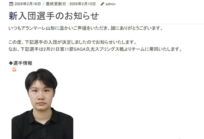 近日,19岁小将杜秋爽加盟日本SV联赛球队山形阿兰马尔,将效力至本赛季结束。先过年,然后2月21日对阵久光温泉的时候随队。目前该俱乐部在联赛中排名垫底。这个消息也是震惊了我们!