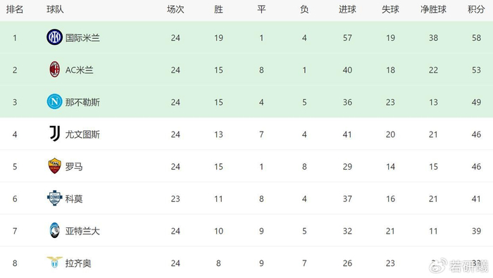 值得一提的是,下周中欧冠附加赛就将开打(国米对阵博德闪耀),连续2个星期,国米都将一周双赛,到时候也会影响国米在联赛中的表现。毫不夸张地讲,接下来这2个星期的表现,将决定国米本赛季的命运。无论意甲还是欧冠,国米都没有退路,面对强势紧逼的AC米兰,国米要么扛住压力,要么提前崩盘,齐沃如果不能挺过这一关,那就将证明他没能力带领球队取得成功,不过要是能顺利过关,那本赛季的国米,在意甲夺冠,就真的没有对手了!