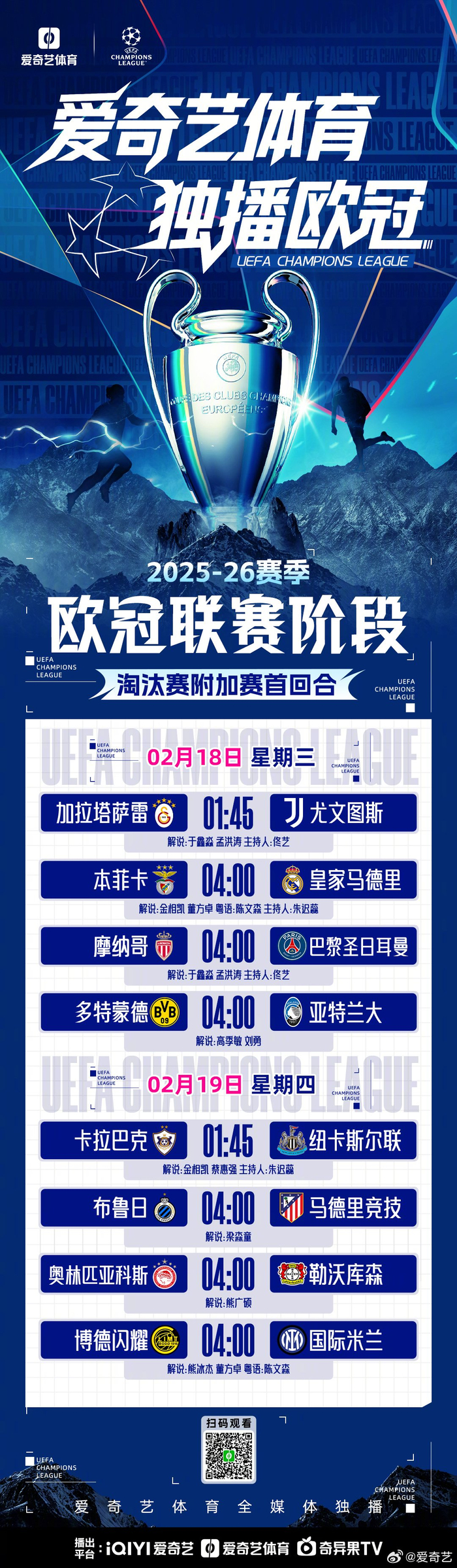 #上爱奇艺体育看欧冠# 马年来临,欧冠不停。25/26欧冠淘汰赛附加赛8场连开。2月18日凌晨4点,欧冠淘汰赛附加赛首回合,本菲卡再战皇马。穆里尼奥再次率队挑战银河战舰。魔力鸟能否再度复刻联赛阶段末轮的奇迹呢?激情欧冠,只在爱奇艺体育。#本菲卡vs皇马# #爱奇艺体育全媒体独播欧冠#