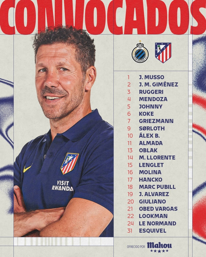 马竞附加赛大名单:阿尔瓦雷斯、格列兹曼在列,冈萨雷斯伤缺