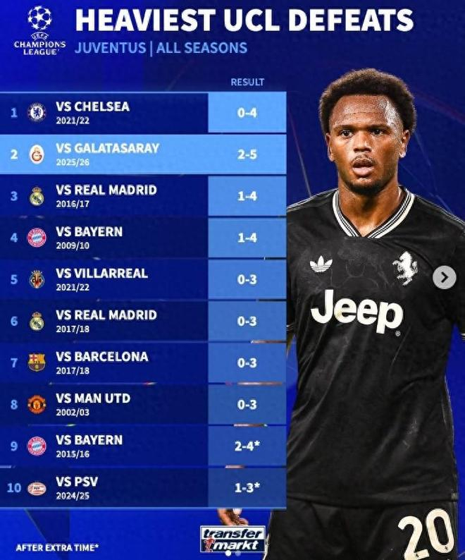 大年初二凌晨,欧冠淘汰赛附加赛首回合的比赛先赛4场,其中尤文图斯2-5惨败给土超球队加拉塔萨雷,此役是尤文图斯欧冠丢球最多的比赛,也是输球第二多的比赛。这战况对于斑马军团以及整个意甲联赛而言是一件非常丢脸的事情。对此德转盘点了尤文图斯在欧冠联赛中的十大“惨案”。