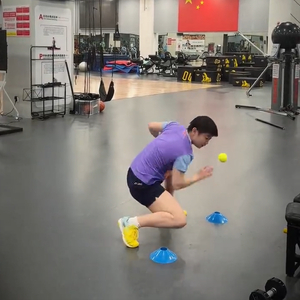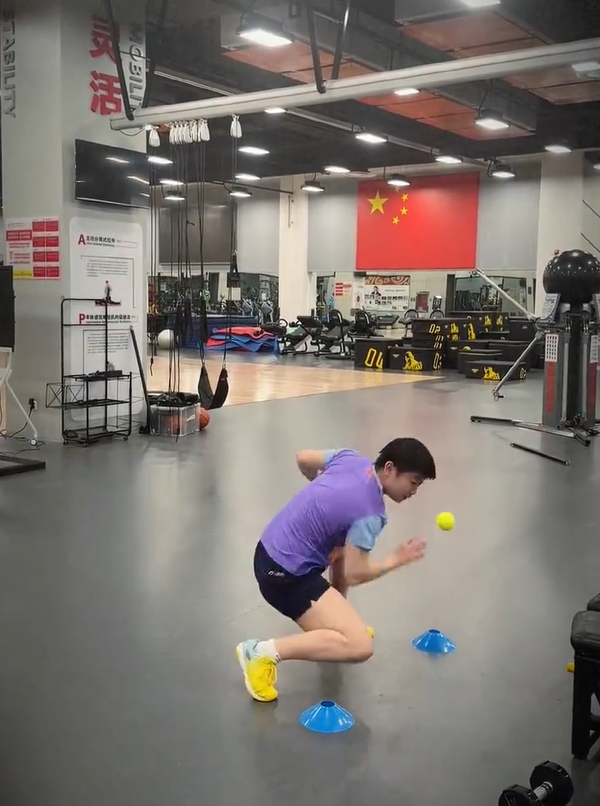 经过短暂春节假期之后,国乒队员再次集结,为新赛季首场WTT大满贯赛事进行最后的准备。女队进行体能训练,队员们通过各种各样的小游戏训练步伐、手速、眼力。孙颖莎在训练中眼疾手快,迅速精准,顺利过关之后,一脸傲娇的小表情很是可爱。孙颖莎拿着球,摆动着手臂,摇晃着身体,展示自己与赛场上完全不同的可爱一面。队员们之间的训练气氛也很是轻松愉悦。