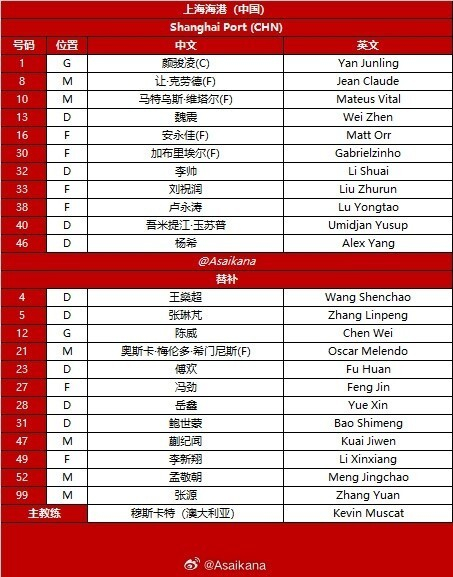 海港vs蔚山:克劳德、加布里埃尔先发,杨希、安永佳出战