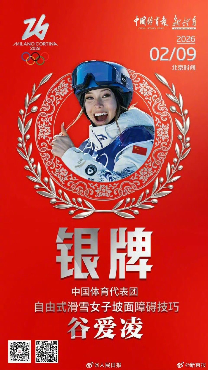中国队集齐冬奥奖牌九宫格,初二日进两金