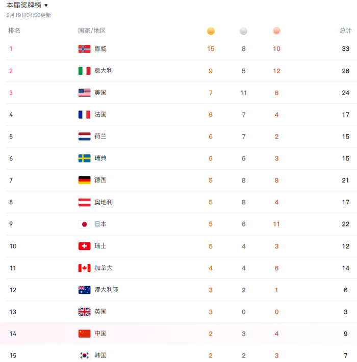 最后一圈超越夺冠!亚洲短道速滑首金 中国颗粒无收 附最新奖牌榜