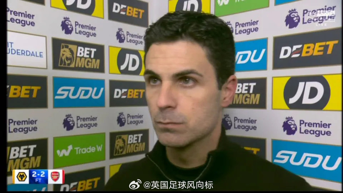 【阿尔特塔赛后言论】#狼队2比2阿森纳#,枪手领先2球被狼队最终补时绝平,赛后阿尔特塔在接受采访时表示: