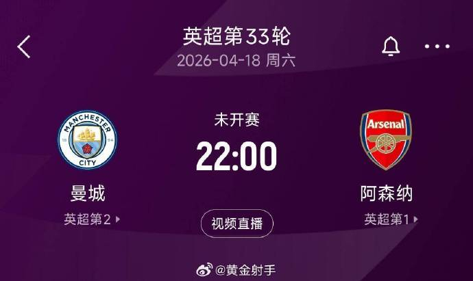 此时排名英超第2的曼城少赛一场,5分落后阿森纳。若是曼城赢下少赛的那场比赛,两队之间的分差将只剩2分。考虑到英超第33轮是曼城主场对阵阿森纳,这场“6分战”将是两队共同的机会。