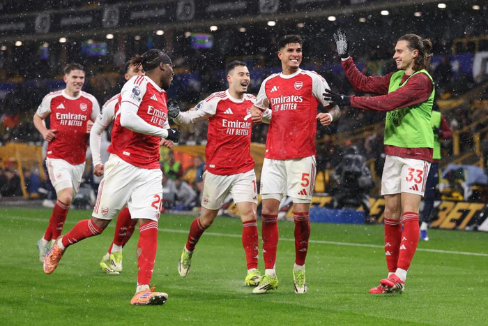 央视网消息:北京时间2月19日,2025-2026赛季英超联赛第31轮,阿森纳客场挑战狼队。上半场,赖斯助攻萨卡破门。下半场,加布里埃尔助攻因卡皮耶打入处子球,布埃诺世界波破门扳回一城,埃多齐补时阶段攻入绝平球。最终,阿森纳客场2-2战平狼队,先赛一场情况下以5分的优势领跑积分榜。