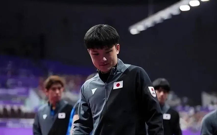 比赛结束后,张本智和的表情充满了失落和沮丧。