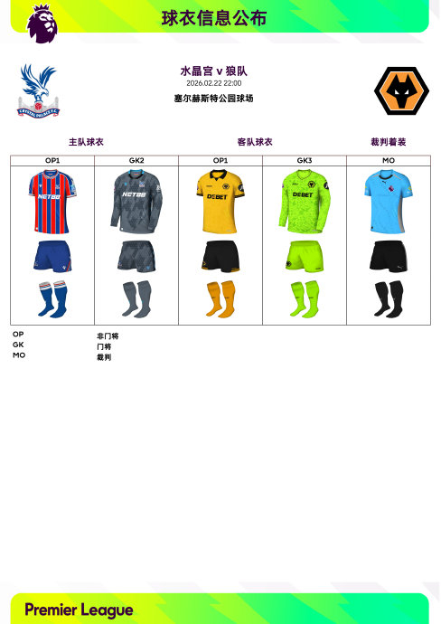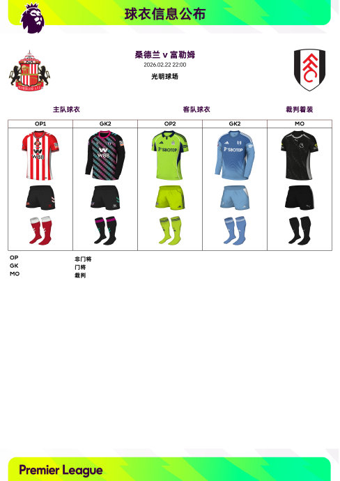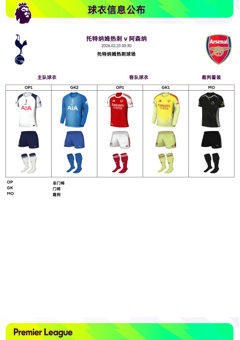 2025/26赛季英超联赛第27轮球衣信息 英超风云会 02.2009:15 关注 2025/26赛季英超联赛第27轮球衣信息:◉ 焦点战——@托特纳姆热刺足球俱乐部 v @阿森纳足球俱乐部 ,双方均穿主场球衣#英超联赛##驿启英超,一起英超#