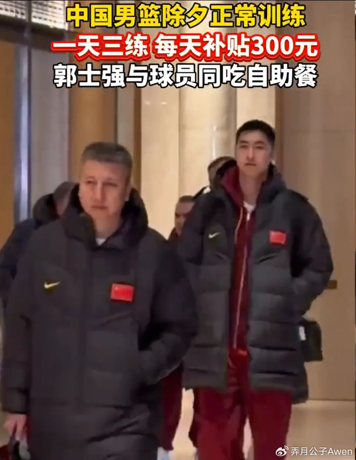 为了备战第二窗口期的比赛,中国男篮在2月5日至2月23日开启集训,因为这期间刚好包含春节假期,国家队的球员们也没有放假。此前有媒体报道,中国男篮甚至除夕还在训练,坚持一天三练,每天只补贴300元,作为主教练的郭士强也跟球员同吃自助餐。