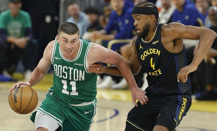 比赛一开始,主场作战的勇士队反而先进入了状态。 穆迪、理查德等球员接连得分,帮助球队在开局阶段取得了领先。 但凯尔特人显然有备而来,他们并没有慌乱。 德里克·怀特用一记急停跳投为绿军稳住阵脚,双方很快战成了15平。