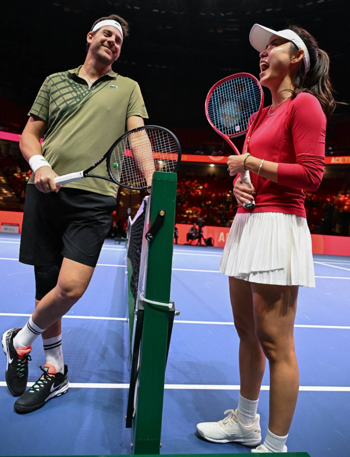 “大师兄”德尔波特罗那个曾经让费德勒都胆寒的“雷霆正手”击球,依旧在发出砰砰的巨响,他代表飞马队出战,在混合双打中搭档可梨对阵特松加/张佳乐组合,单打则与特松加上演“暴力网球”对决。而“法国阿里”特松加的暴力发球,依然势大力沉。在男双和混双环节中,这些网坛传奇们不仅展示了高超球技,更是通过各种趣味互动,让上海体育馆充满了新春的欢声笑语。