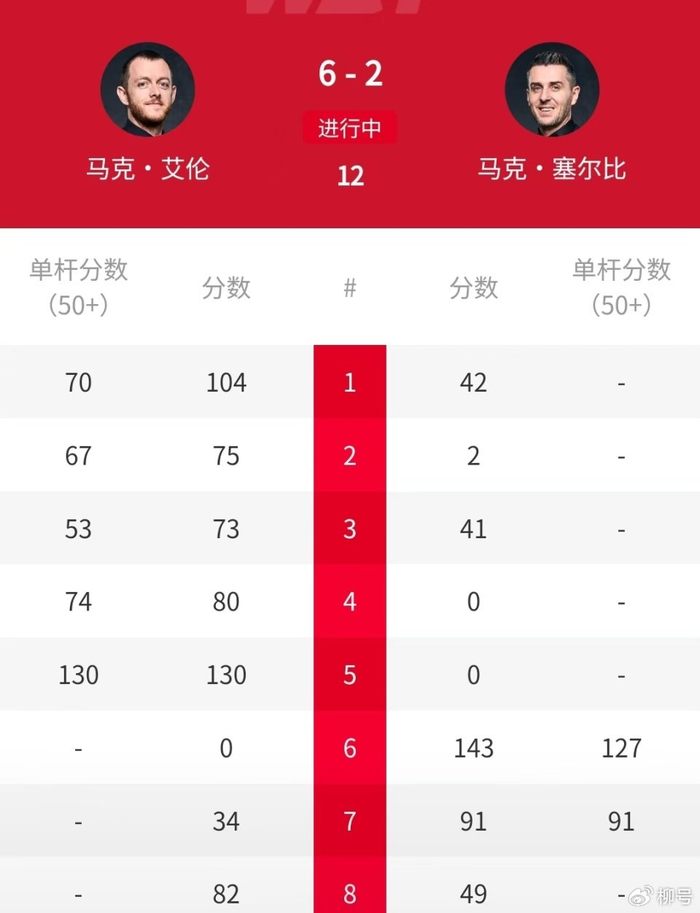 此役,塞尔比自始至终占据优势,牢牢压制利索夫斯基。数据方面,塞尔比轰出一杆破百(136分)和一杆50+(84分),利索夫斯基打出三杆50+(63分、56分、70分)。