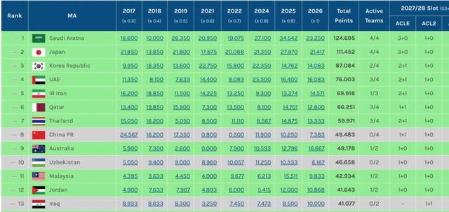 必须放开外援!中超亚足联积分东亚第9:国足或被泰国超越