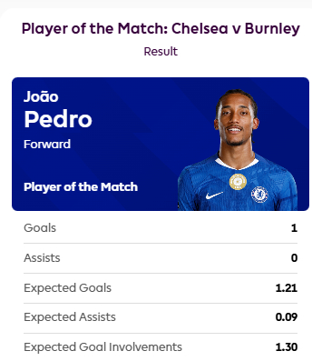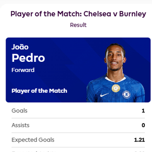 开场破门,若昂-佩德罗当选切尔西vs伯恩利球迷票选最佳