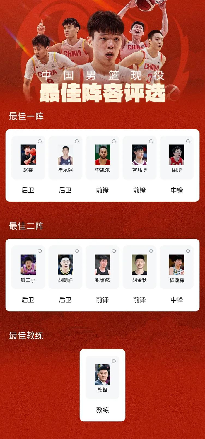 中国男篮现役最强阵容评选