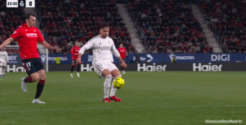 上轮巴萨爆冷输球,皇马时隔多轮终于是再次夺回榜首,然而没有想到的是,皇马才刚登顶,今天作客埃尔萨达尔球场就翻车输球。开场后面对排名中游的奥萨苏纳,皇马无法占据绝对优势,第20分钟,皇马获得前场右侧45度角任意球机会,居莱尔操刀主罚兜传门前,阿森西奥超近距离抢点回头望月甩头攻门,门将埃雷拉稳稳将球扑住。第33分钟,奥萨苏纳快速反击,布迪米尔高速插上和回防的阿森西奥抢到一块,阿森西奥伸脚凌空将球破坏,只是这时出击慢了半拍的门将库尔图瓦出脚将布迪米尔踢倒。主裁在几分钟的VAR确认后吹罚了点球,布迪米尔亲自操刀主罚骗过库尔图瓦,轻松将球罚进,奥萨苏纳1:0首开纪录。