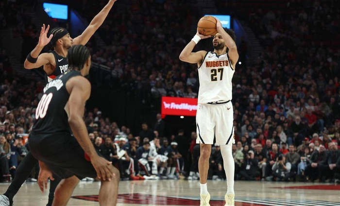 进入第二节,开拓者试图组织反击。 他们一度将分差迫近到9分,但贾马尔·穆雷在这个时候站了出来。 这位掘金队的后场核心接过了进攻大旗,他在外线手感滚烫,单节命中了四记三分球,独得15分。 在穆雷的带领下,掘金队的进攻火力没有丝毫减弱。 他们单节再次轰下41分,而开拓者只得到26分。 半场结束时,比分已经变成了82比53,掘金带着29分的巨大优势进入更衣室。约基奇在半场就轻松拿下24分、5个篮板和4次助攻。