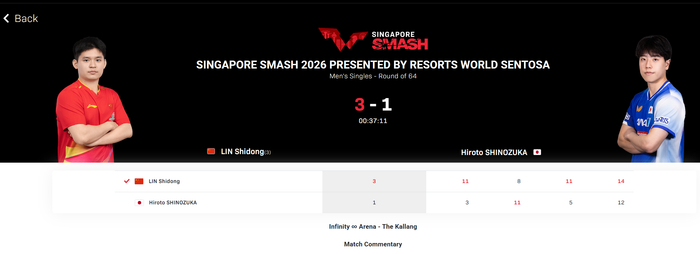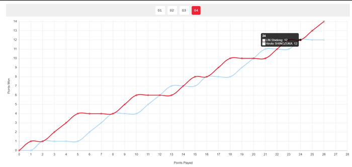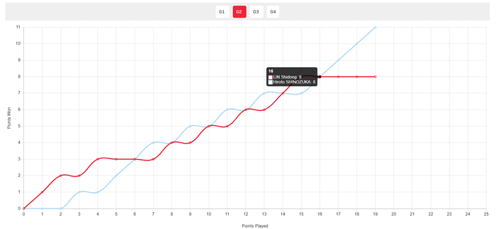 第二局林诗栋开场3-1领先但很快被篠塚大登反超,林诗栋8-7领先后,篠塚大登直接打出4-0的攻防浪潮扳平大比分。第三局林诗栋一路领先吊打篠塚大登。