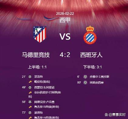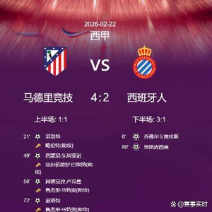 比赛在北京时间2月22日凌晨4点打响,赛前,马竞虽然排名第四,但状态起伏得像过山车,最近5场比赛2胜1平2负,联赛里更是刚经历了0-3惨败给巴列卡诺的耻辱。西班牙人已经连续7轮联赛没能赢球了,战绩是2平5负,防线漏洞百出。谁都没想到,状态更差的客队反而先给了主队一记闷棍。