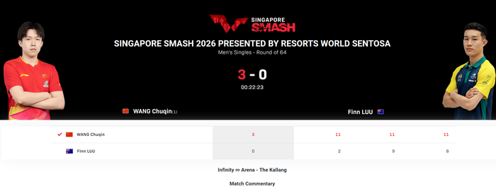 进入2026赛季王楚钦接连击败张本智和、张佑安、周启豪、郭勇、阿卜杜勒瓦哈卜、冯翊新、帕尔豪取七连胜,此役拿到新加坡大满贯的首胜后王楚钦本赛季已经拿到八连胜。
