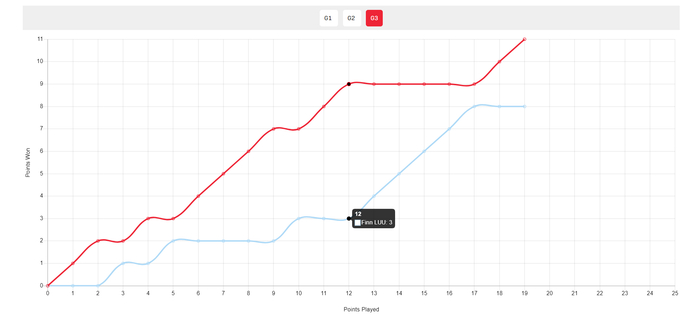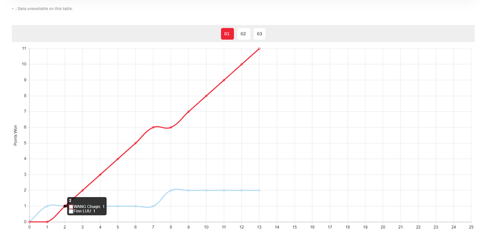 第三局我觉得王楚钦开始有些放松,他一度是9-3领先,但被卢伟打出5-0的攻势直接缩小到8-9,好在关键分王楚钦还是没有丢,最终王楚钦11-8拿下胜利。
