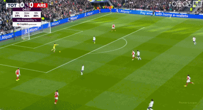 第34分钟,赖斯带球失误被断,穆阿尼破门!热刺1-1扳平阿森纳!