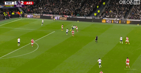 第47分钟,下半场梦幻开局!哲凯赖什破门!阿森纳客场2-1领先热刺!