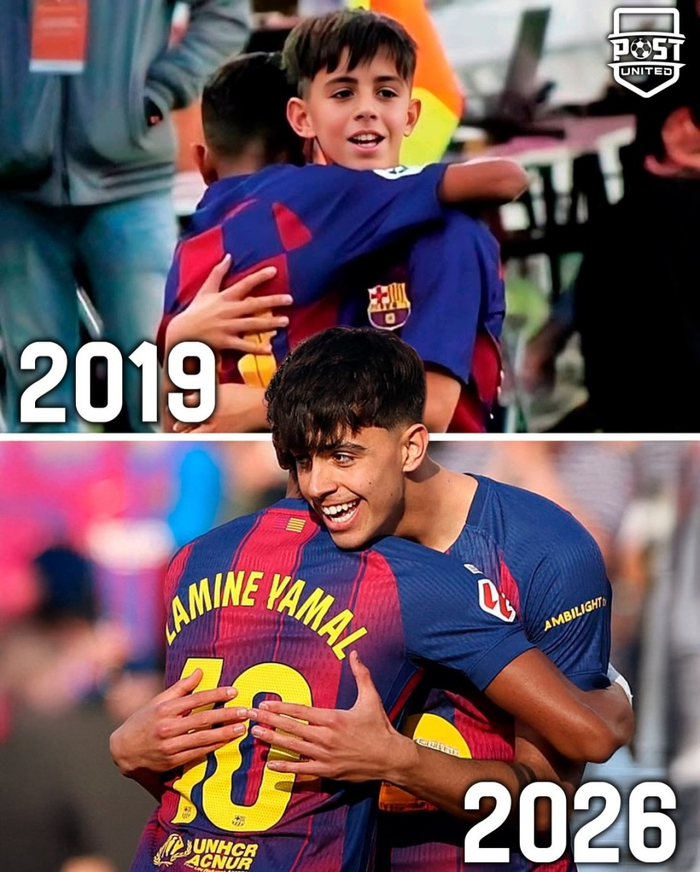 赛后,亚马尔与贝尔纳尔相拥庆祝的瞬间在社媒刷屏,不少球迷也晒出两人2019年在拉玛西亚时期的旧照对比:同样的拥抱,如今发生在诺坎普的一线队舞台。