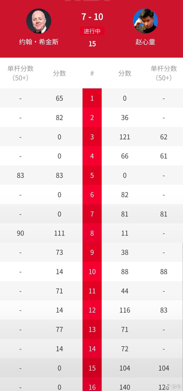 最终的决赛,赵心童与希金斯在第一阶段打得势均力敌,以4-4战成平局。第二阶段,双方开局也是非常胶着,但从第十四局开始,赵心童强势发力,他轰出四连鞭,总比分10-7战胜希金斯夺得冠军,同时收获140万人民币的冠军奖金,祝贺赵心童!