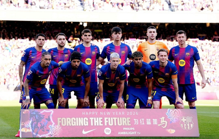 巴萨3比0莱万特,首发11人合影西甲赛场