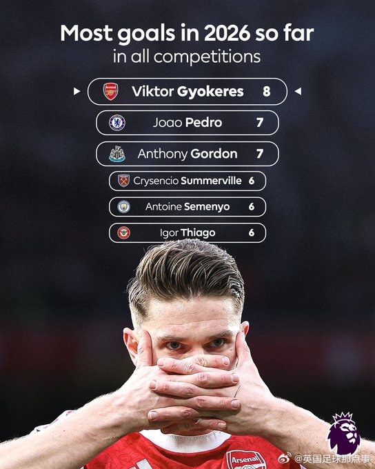英超官方:哲凯赖什2026年进球数领跑联赛 英国足球那点事 优质体育领域创作者 02.2312:20 关注 英超官方:哲凯赖什在2026年各项赛事中的进球数超过了任何一位英超球员!👏#热刺1比4阿森纳#