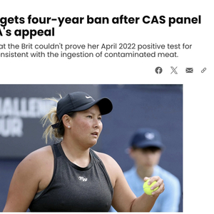 然而,国际网球诚信机构(ITIA)对此判决提出上诉。2025年7月,国际体育仲裁法庭作出了颠覆性的改判:摩尔被禁赛四年,扣除已执行的19个月临时禁赛期后,她最早要到2028年才能重返赛场。CAS在声明中指出,摩尔未能证明样本中兴奋剂浓度与食用污染肉类的情况相符,且无法证实此次违规“非故意”。