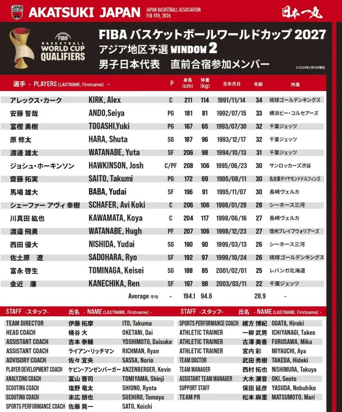 日本男篮经历了亚洲杯低迷后,渡边雄太重返日本男篮,帮助球队取得2连胜,与韩国并列小组前二名。